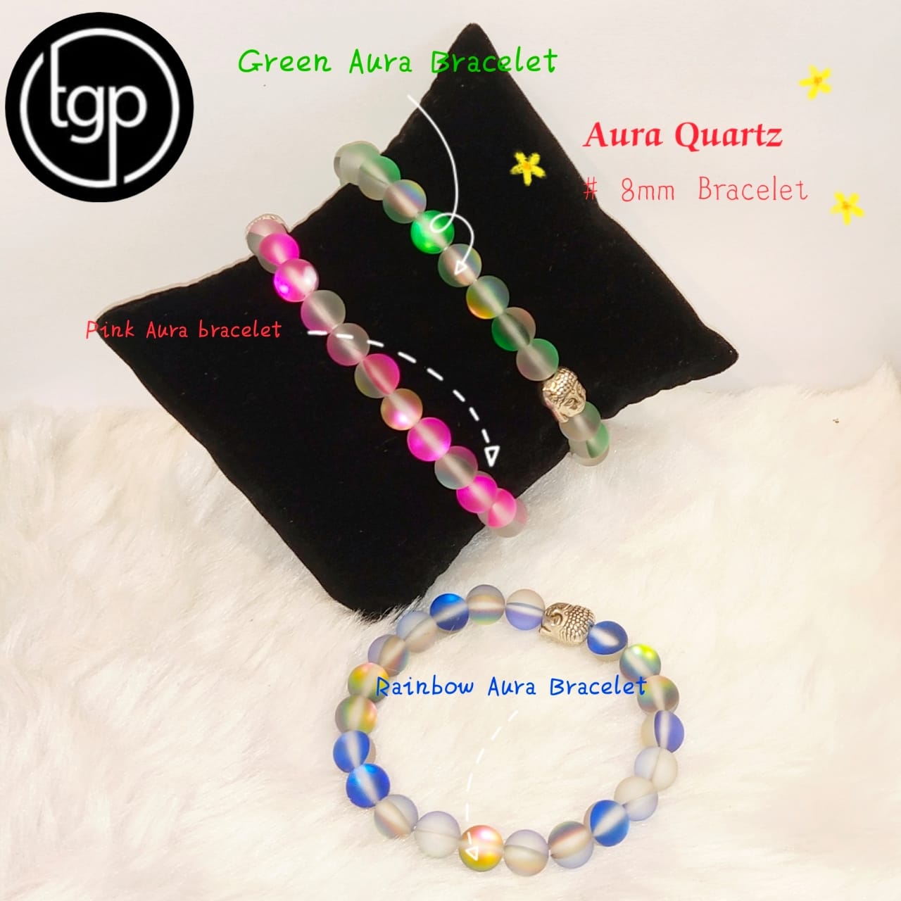 These exquisite 8mm round matte mystic aura quatzs gemstone bracelet has been beaded with care and handmade with a strong elastic stretch cord. Its a perfect bracelet for any occasion. It can be worn alone or stacks with bracelets. We can personalize as per your demand. it is Mermaid Bracelet ,Spectrolite,Holographic Bracelet,Glowing Aura Moonstone Bracelet.