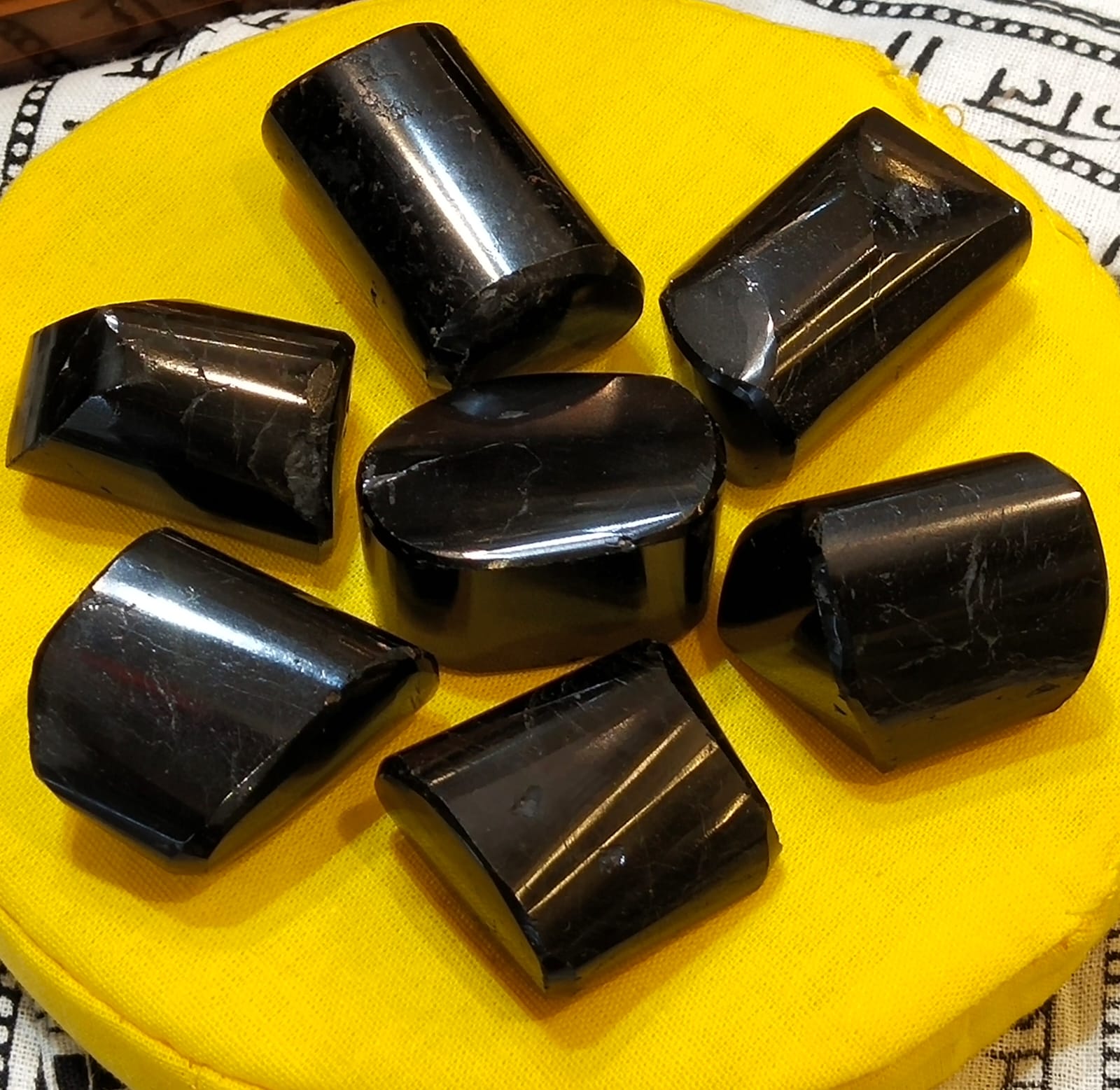 This listing is for a "Seven Piece "Set of Black Tourmaline Tumbled Stone - Polished Hematite Crystal.